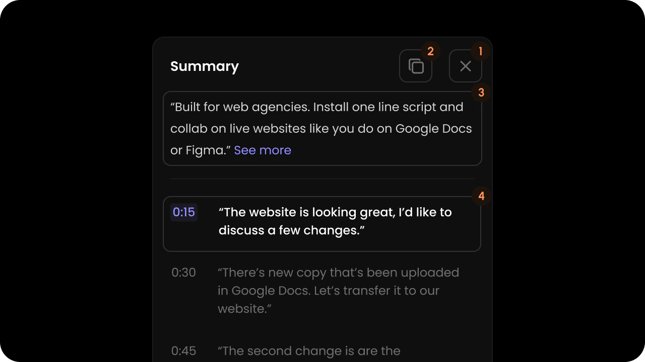 <VeltTranscriptionWireframe.FloatingMode.Panel.Summary.ExpandToggle.Off />